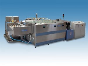 Machine design allows inclusion of ultrasonic, super high pressure or super high flow rinse modules